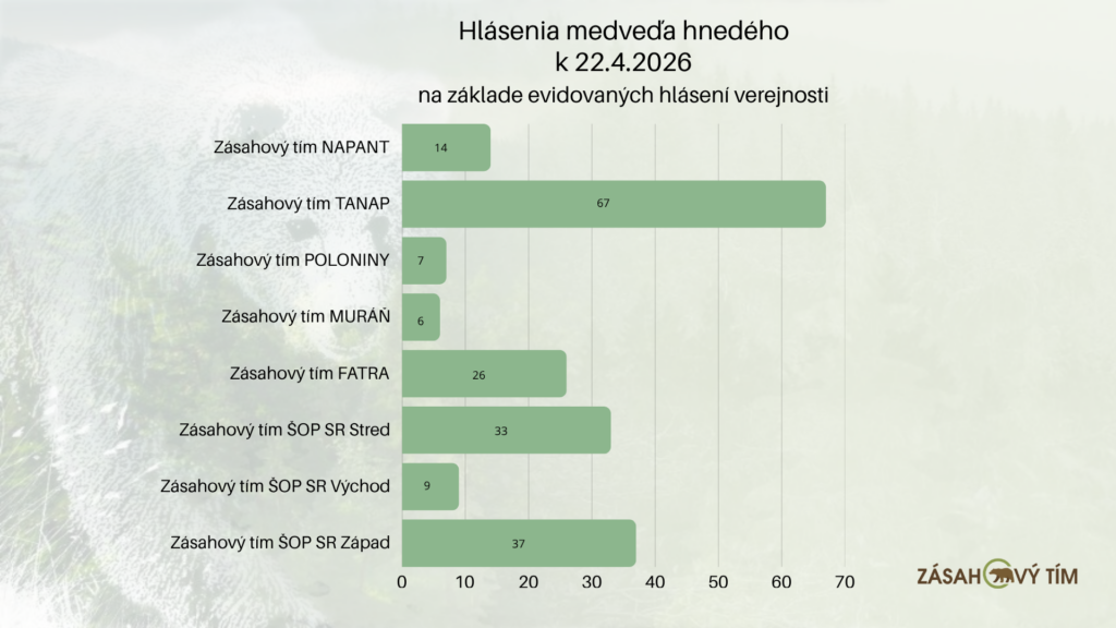 Hlásenia medveďa hnedého k 22.4.2026.